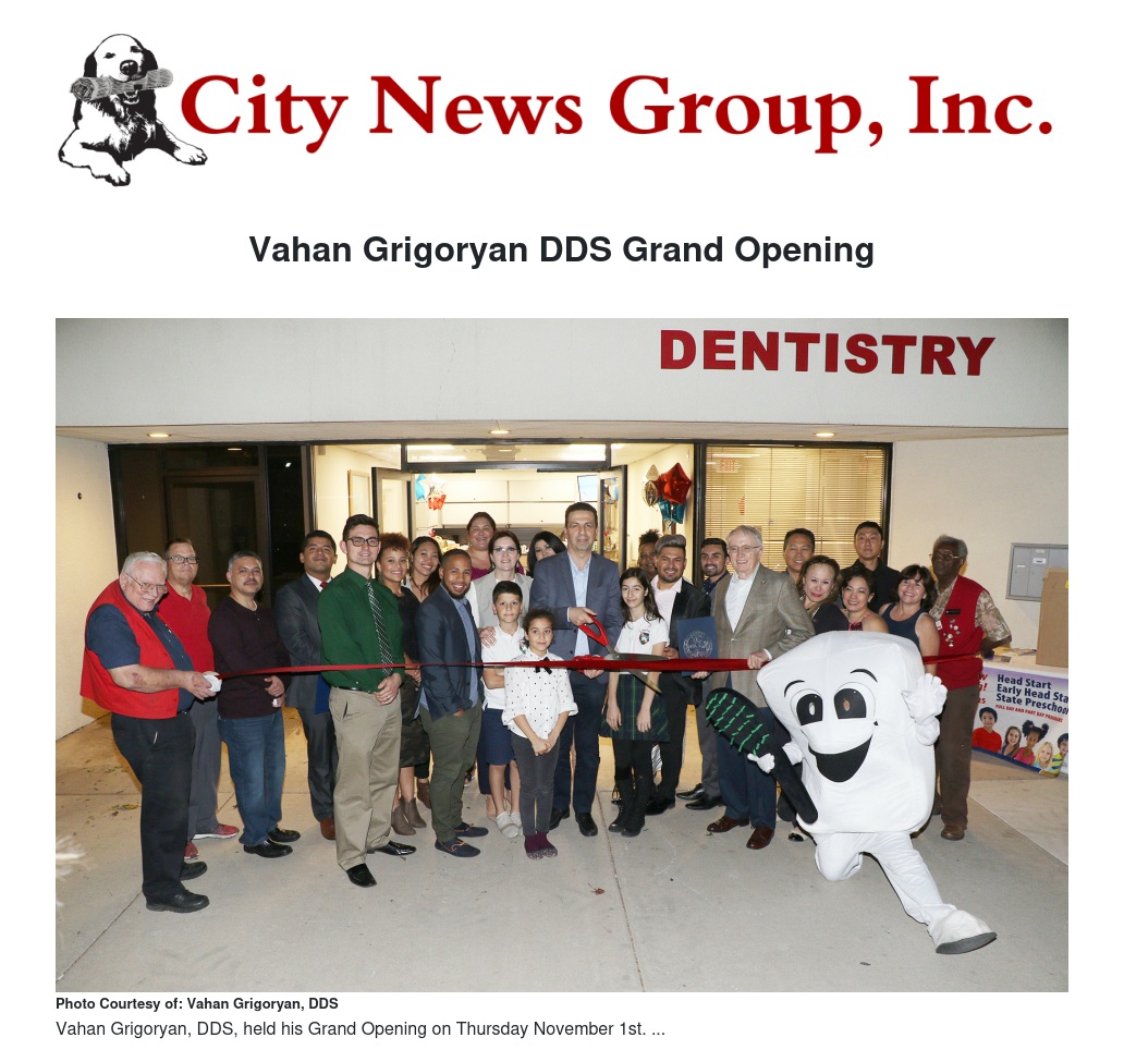 Grand Opening and Ribbon Cutting Ceremony of Dr. Grigoryan’s new dental practice in San Bernardino will be held on November 8, 2018 at 4:00pm. All members of the local community are cordially invited to join the tour of the office and book their first appointment. Light refreshments and treats will be generously provided by Dr. Grigoryan and his team.