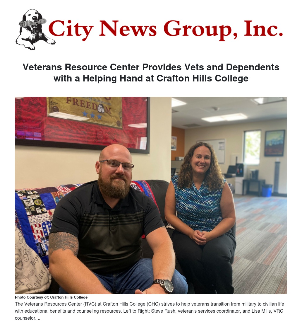 To learn more about the VRC or start your Crafton journey, email veteransservices@craftonhills.edu or call 909-389-3396.