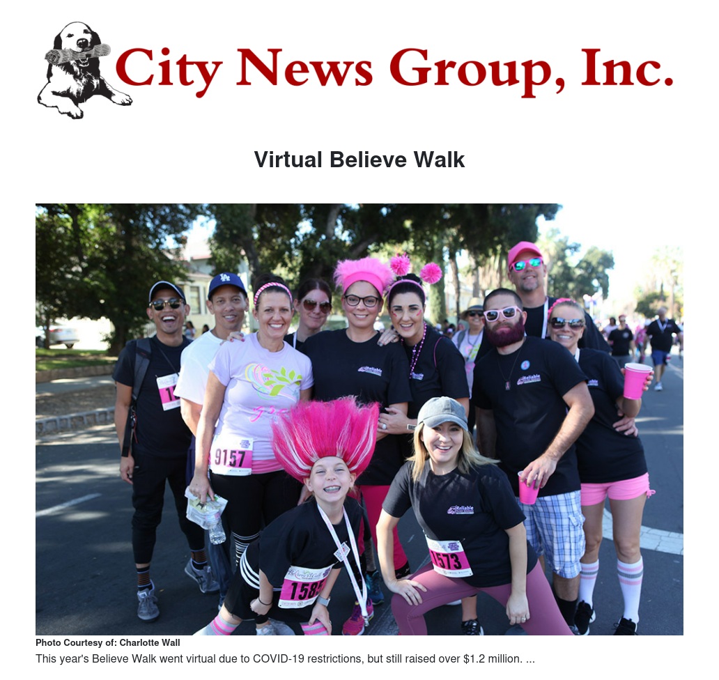 Stater Bros. Charities and Inland Women Fighting Cancer invite the public to participate in the Virtual Believe Walk on Sunday, October 4th to support programs and services at local cancer fighting organizations. The health and well-being of the community is a top priority and out of an abundance of caution due to Covid-19, the annual fundraising walk, which had taken place in-person in downtown Redlands for the previous twelve years, has shifted to virtual this year.