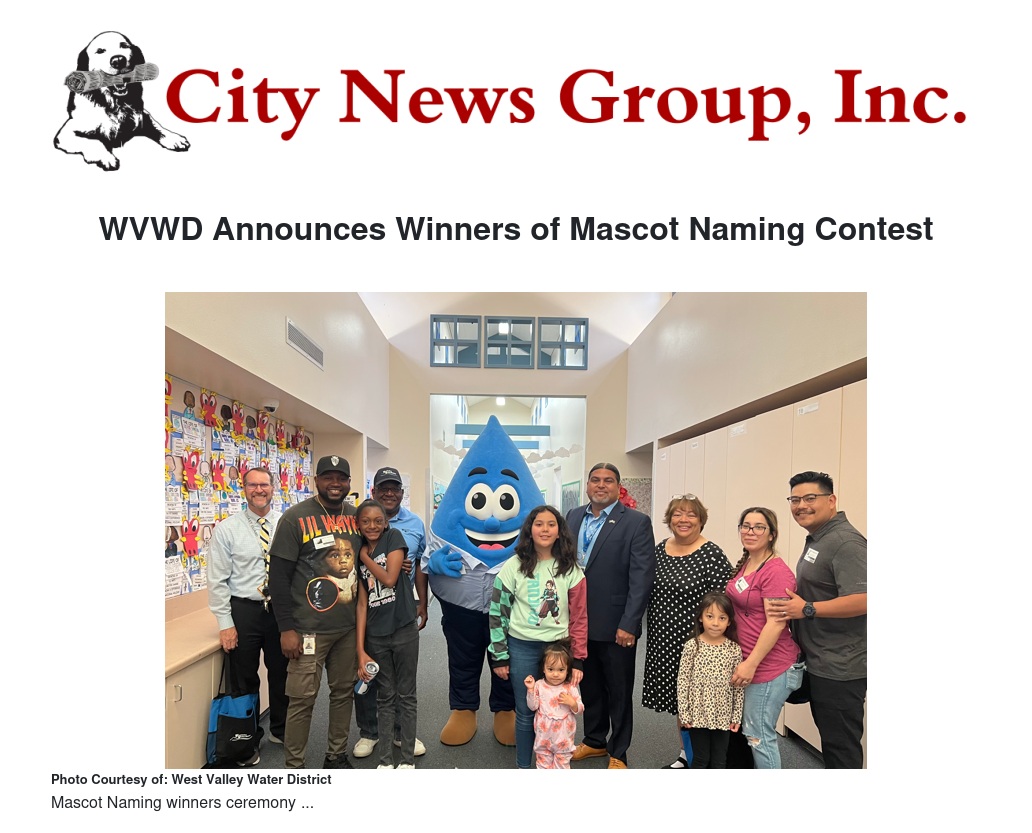 “We extended our gratitude to the students who used their creativity to help bring our mascots to life,” said WVWD Board Director Kelvin Moore. “We believe these mascots will leave a lasting impact in our efforts to educate the community on being environmental stewards.”